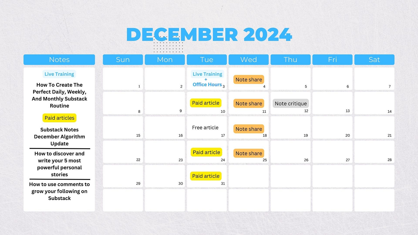 Tomorrow, I’m hosting a live training for paid subscribers at 11 AM ET titled How To Create The Perfect Daily, Weekly, And Monthly Routine On Substack.